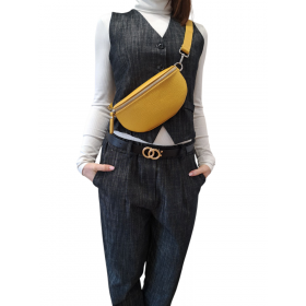 Elegantná stredne veľká dámska kožená kabelka so vzorom v modrej farbe s hnedými uškami vhodná na bežné nosenie. Je vyrobená z kvalitnej kože v taliansku. Kabelka sa zatvára patentom s magnetom. Vo vnútri sú dve komory predelené vreckom na zips. Vnútorná podšívka je v čiernej farbe. Kabelka sa dá nosiť v ruke za ušká alebo vďaka dlhému ramienku cez plece. Kovanie je v striebornej farbe.